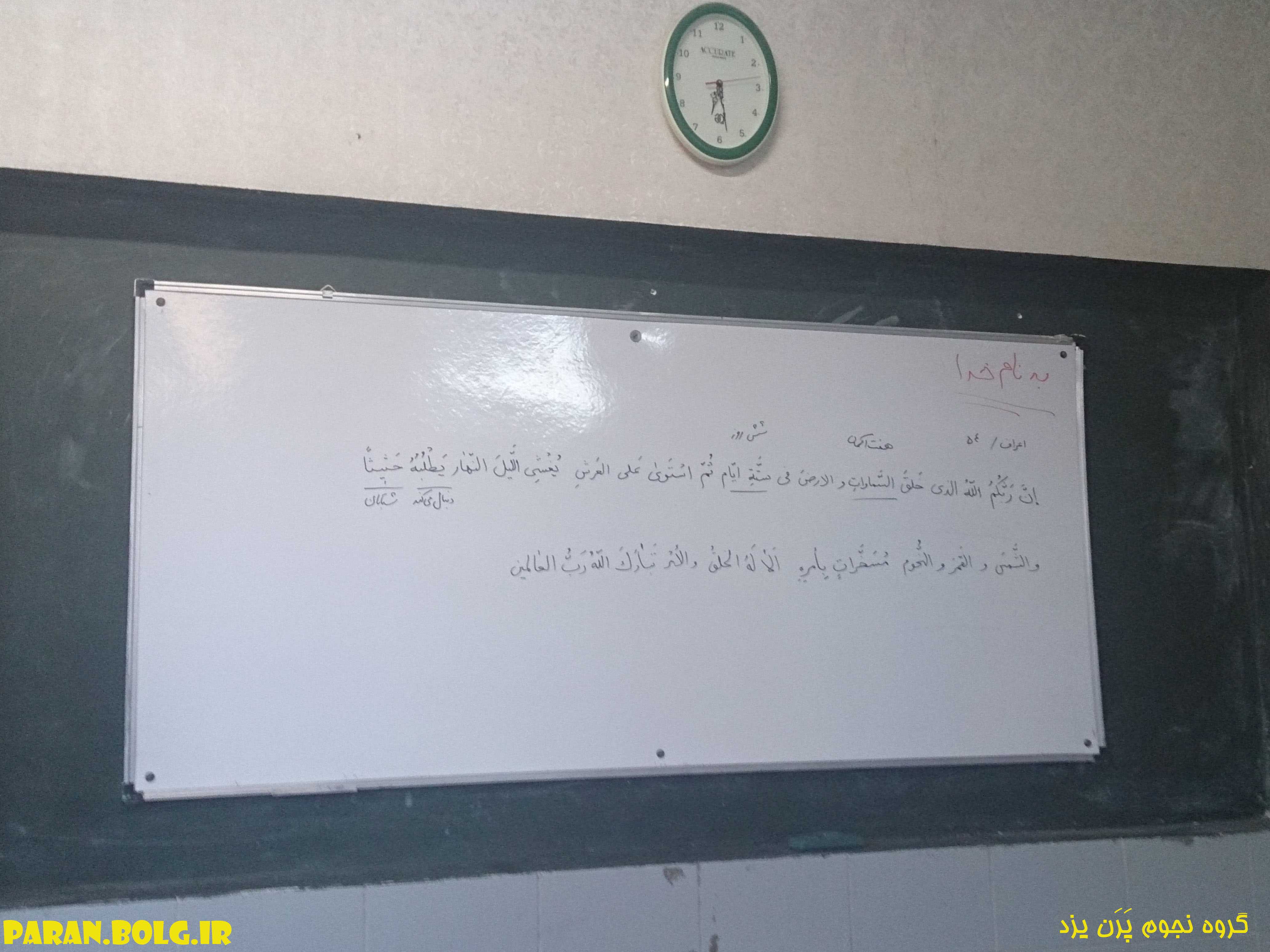 در ابتدای جلسه آقای مصدق به تفسیر آیه ی ۵۴ از سوره ی اعراف پرداختند و در مورد نکته های این آیه که با بعضی از تفسیرهای علمی مطابقت دارد،توضیح دادند.